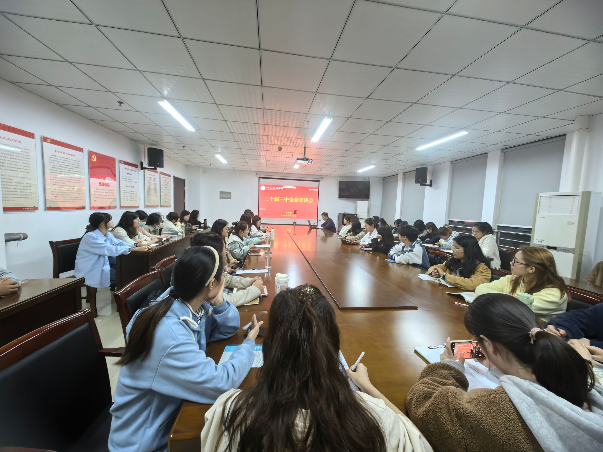 为深入学习宣传党的二十届三中全会精神,10月28日,黄色片免费看党委在行知楼802会议室召开学习贯彻党的二十届三中全会精神宣讲会,院党委书记许锃为学生党员作专题宣讲。