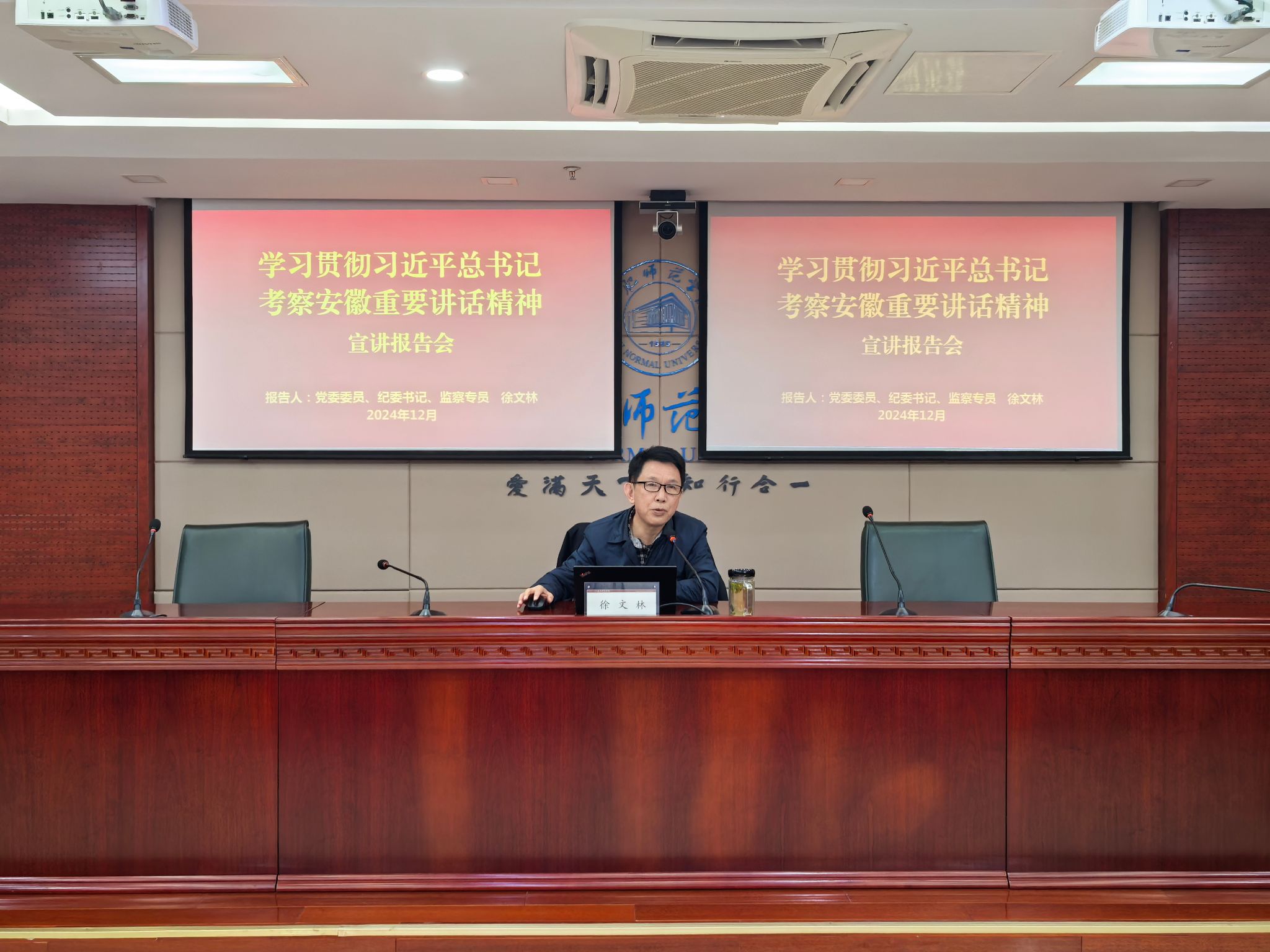 为引导广大师生深入学习宣传贯彻习近平总书记考察安徽重要讲话精神,根据学校统一安排,12月11日,院党委委员、纪委书记、监察专员徐文林为联系单位黄色片免费看、外国语学院和生物与食品工程学院党员作习近平总书记考察安徽重要讲话精神专题宣讲。
