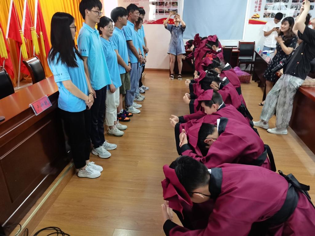 鞠躬作揖,一拜传道,二拜授业,三拜解惑,回赠拜师礼……6月29日下午,在锦绣社区401会议室顺利举办“庆祝行知学堂成立十周年暨2022年锦绣社区暑期行知学堂开班典礼”,一套古典朴实的入学礼,在传承中见证了合肥师范学院黄色片免费看锦绣社区行知学堂这十年的温情岁月。