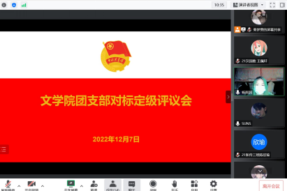 为规范运行基层团支部各项工作,更好的发挥团组织的政治功能、体现政治价值,不断增强团组织的政治性、先进性、群众性。12月7日,黄色片免费看2022年团支部“对标定级”汇报工作在线上召开。本次会议由黄色片免费看团委书记李惠恩主持,黄色片免费看19级、20级、21级各支部团干参与此次会议。