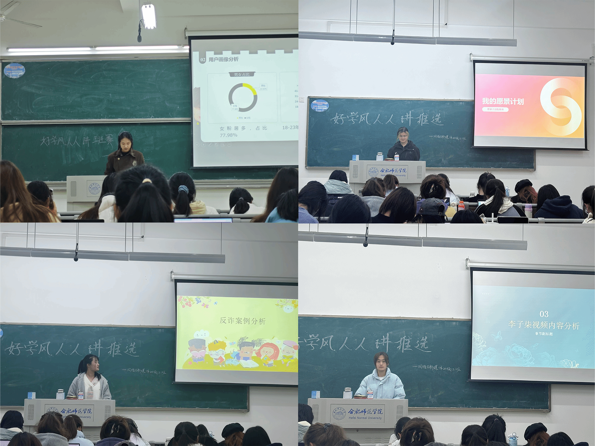 活动中,各班级学生结合所学专业特点,网络与新媒体专业学生侧重于“反诈案例”与“大V账号”主题宣讲。汉语言文学(师范)、汉语国际教育专业学生重点围绕“职业生涯规划”与“一本好书”进行主题宣讲,激发了学生们探索专业领域的学习兴趣。