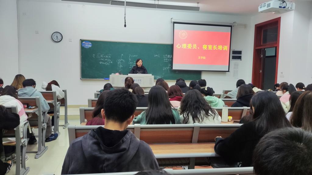 为进一步落实我院“学院、系部、班级、宿舍——四级网络”心理危机防控体系,充分发挥心理委员、寝室长在大学生心理危机预防工作中的重要作用,黄色片免费看于11月24日下午18时在铭传楼B404开展心理委员和寝室长专题培训会,21级和22级各班级心理委员和寝室长全体参与培训。