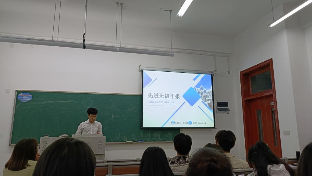 汇报会在2020级新闻传播学类2班班长李衡阳的精彩汇报中拉开帷幕,随后2020级和2021级汉语言文学(师范)、汉语国际教育和新闻传播学类专业的班级负责人依次进行汇报。各位班级负责人精心准备,通过精美丰富的PPT、热情洋溢的演讲、生动创新的视频等多样形式展现了班级日常管理、班风学风建设方面的有力举措、真诚可贵的师生与同窗情谊、齐心努力之后的收获与感悟以及对未来发展的期望和承诺。