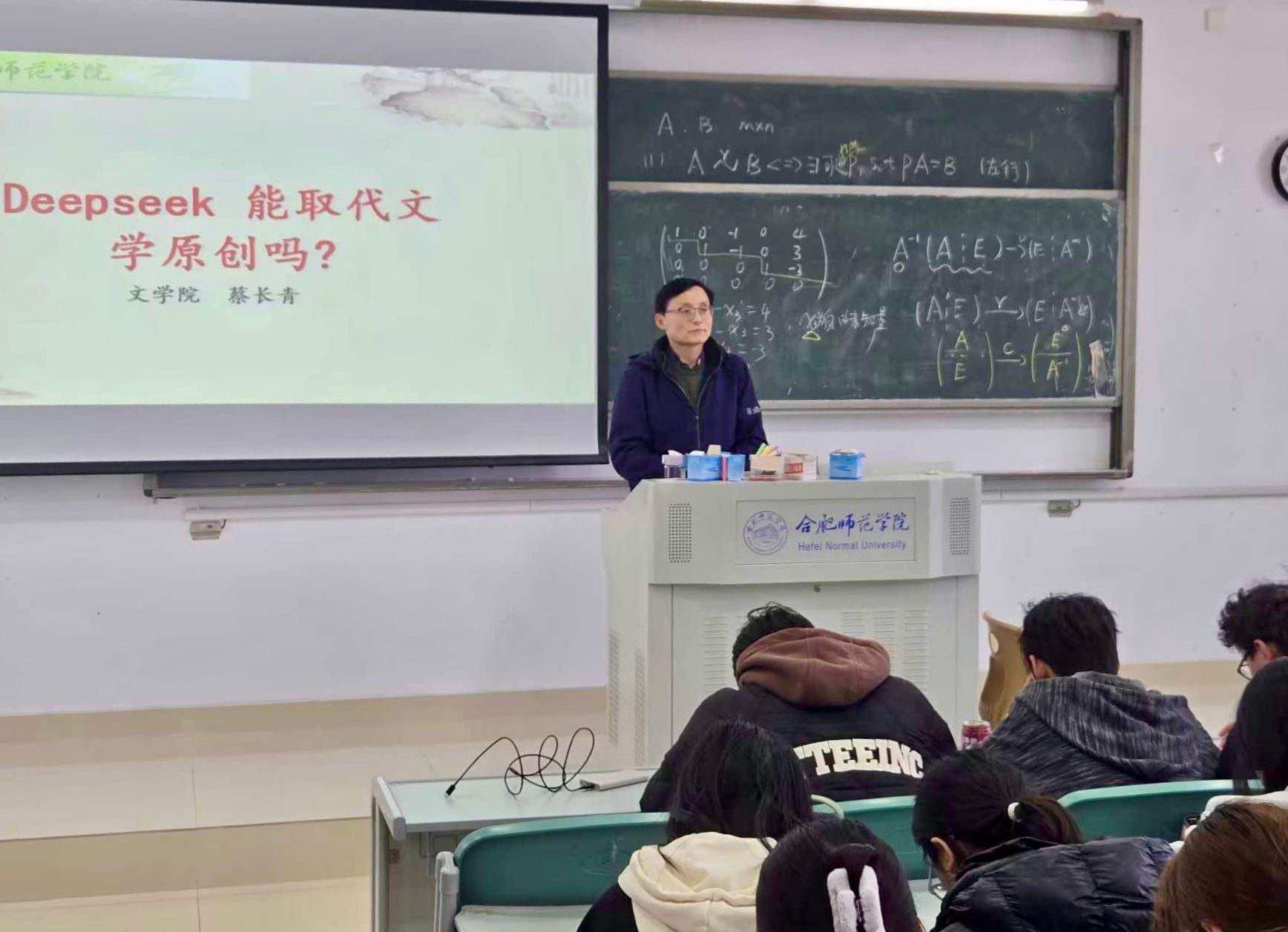 3月19日,黄色片免费看“行知讲堂”在滨湖校区开讲,中文系蔡长青老师在博学楼A203教室作题为《DeepSeek能取代文学原创吗?》主题讲座,带领汉语言文学专业学生一同领略原创文学与AI的跨界对话。