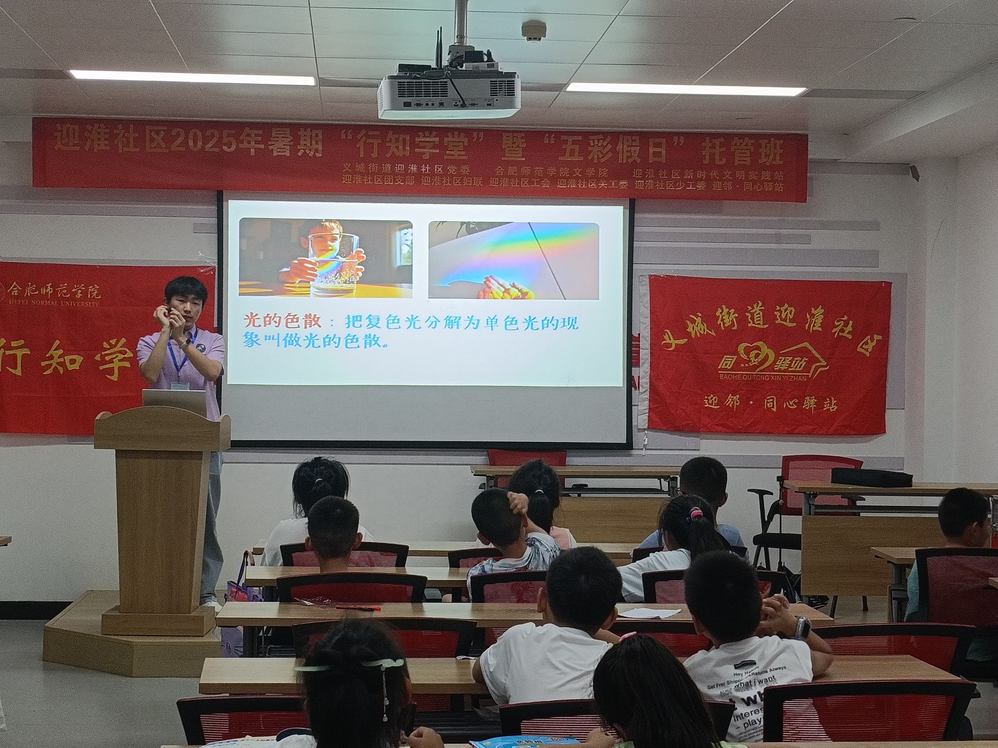 为激发青少年对科学的好奇心与探索欲,7月14日,合肥师范学院格物思维科普服务队走进迎淮社区行知学堂,成功举办了“神奇的光变探秘之旅”主题科普活动。作为本次科普系列活动的第二场,也是最后一场,它为整个系列画上了圆满的句号,为行知学堂的青少年们带来了一场精彩纷呈、意义非凡的科学盛宴。