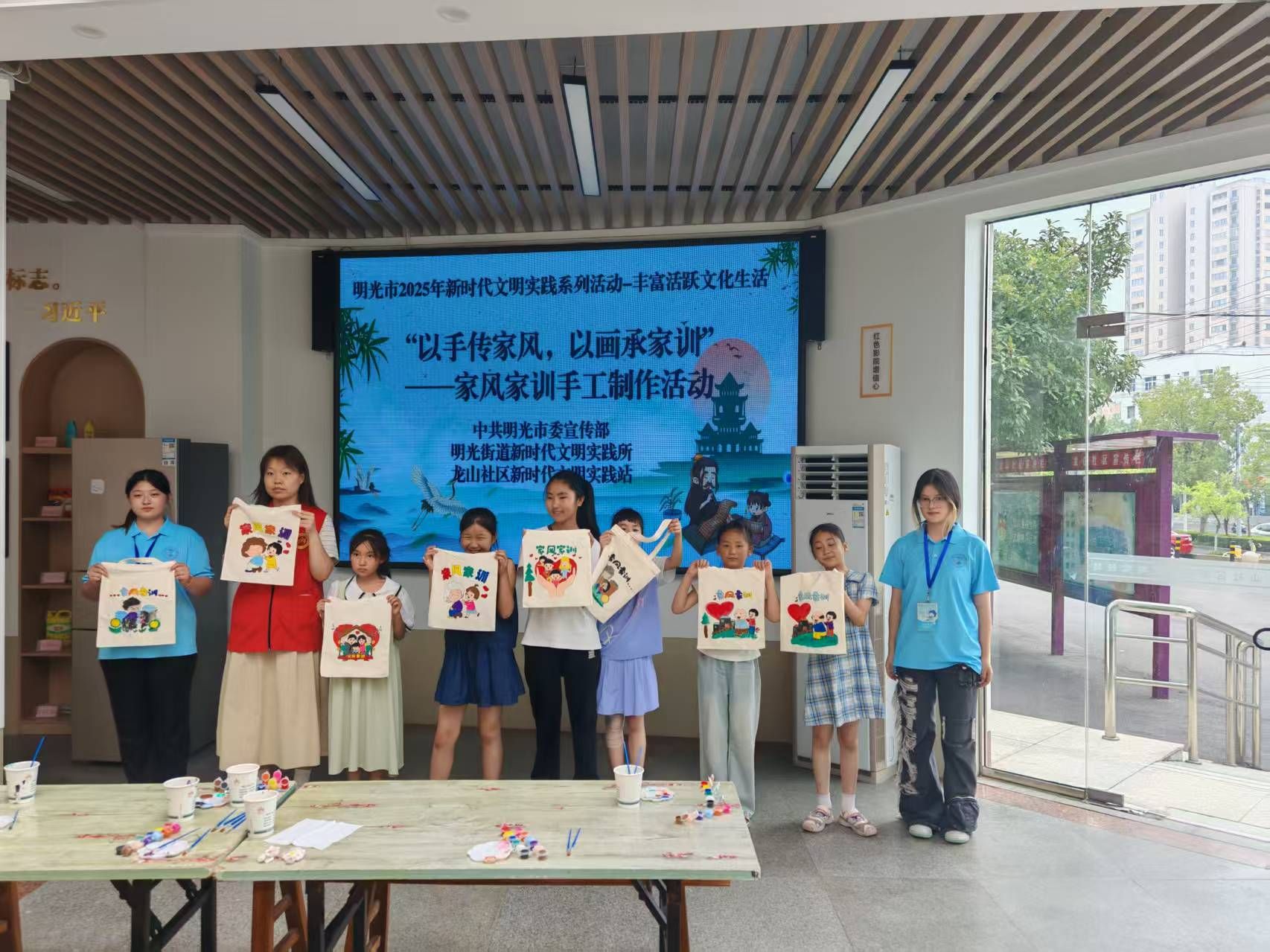 7月18日,明光市龙山社区行知学堂在社区党群服务中心开展了一场别开生面的家风传承活动,通过知识传承讲解与手工创作相结合的方式,亲子家庭共同体验了家风家训的深刻内涵,让抽象的家风化为生动的实践。