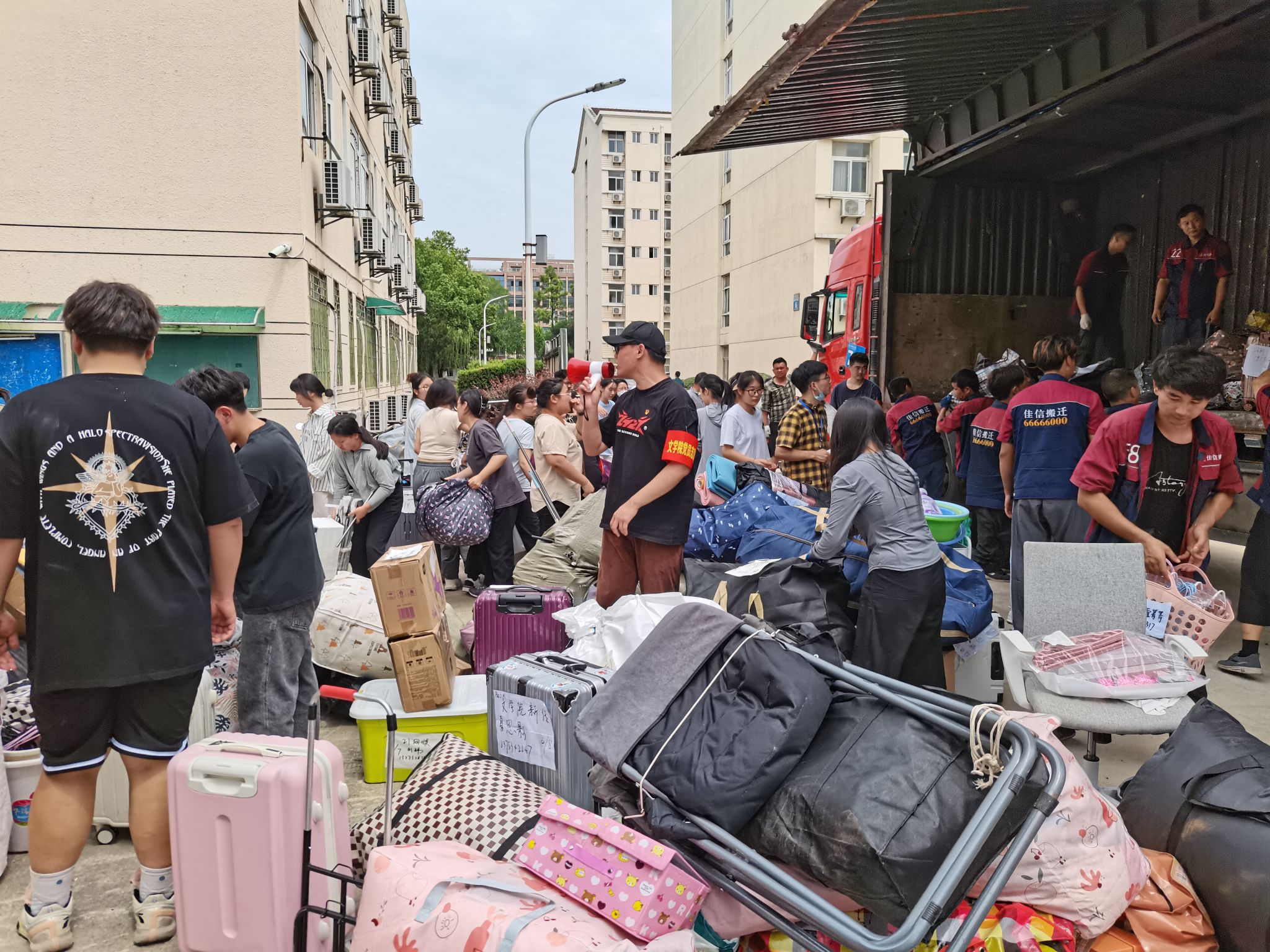 搬迁过程中,穿梭在人群中的志愿者们成为了一道靓丽的风景线,为充分发挥党支部的战斗堡垒作用和党员学生干部的先锋模范作用,学院积极组建由学生党员和班级干部组建的志愿服务队,在两个校区做好协调接应工作,车上车下搬运行李,充分体现了志愿服务队的责任感与战斗力。各班同学之间互帮互助,用实际行动展现了团结友爱的精神,使得搬迁工作秩序井然。