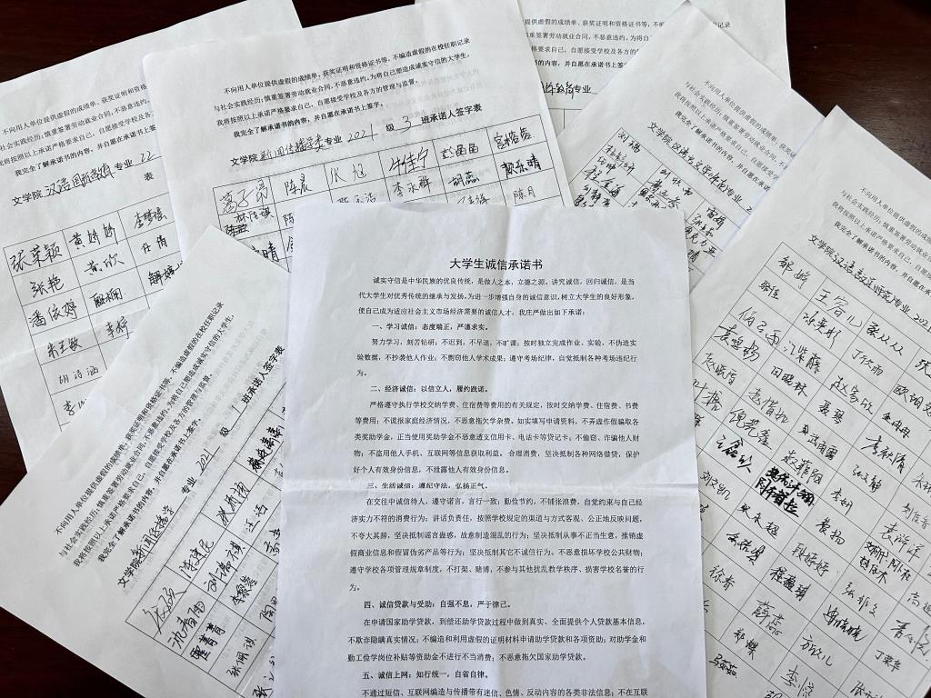 黄色片免费看积极开展签订诚信承诺书主题活动,承诺书从学习诚信、经济诚信、生活诚信、诚信贷款与受助、诚信上网、诚信就业六个方面,倡导学生自觉做到诚实守信,把道德原则和道德规范内化为内心信念,外化为实际行动,从而培养大学生诚信道德意识。