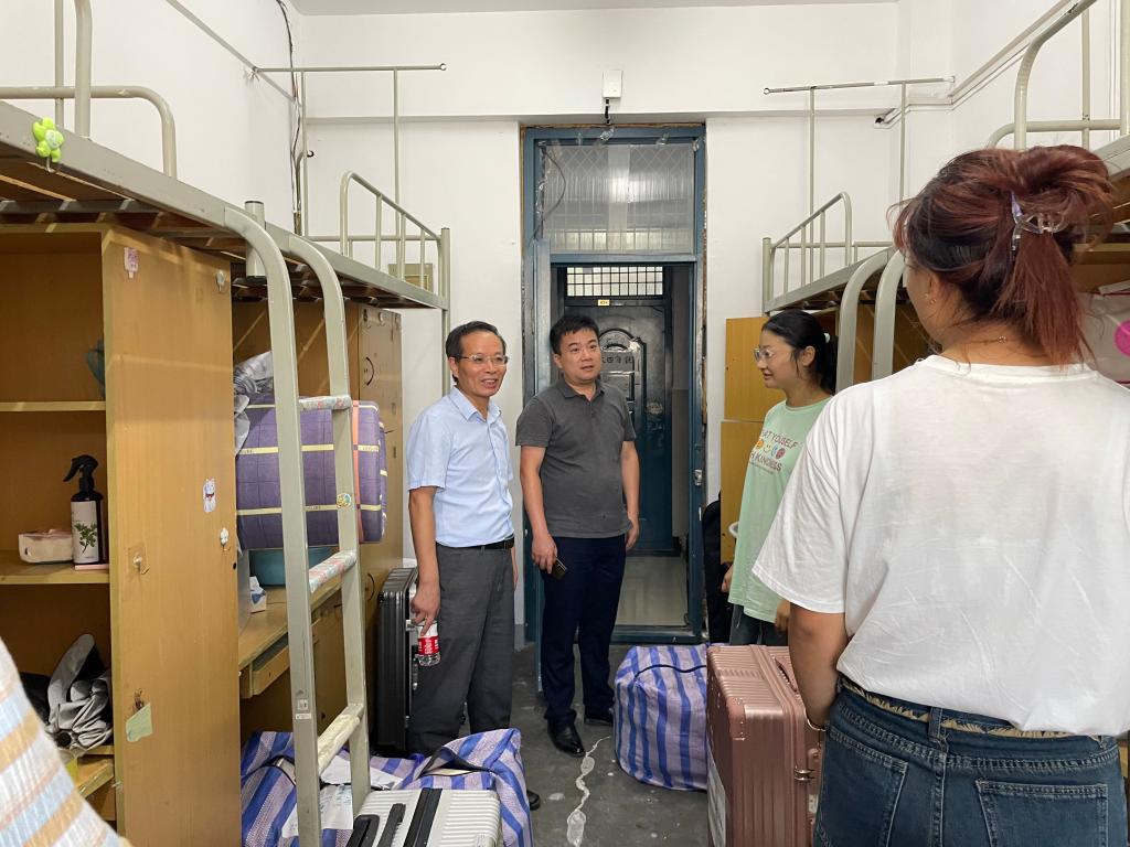 为保障学院搬迁工作和返校工作安全、有序、平稳进行,进一步详实了解返校学生思想动态、学习和生活情况,9月2日——9月4日期间,黄色片免费看党委书记李旺生、党委副书记陈好和全体辅导员深入走访锦绣校区和滨湖校区学生宿舍,看望慰问学生。