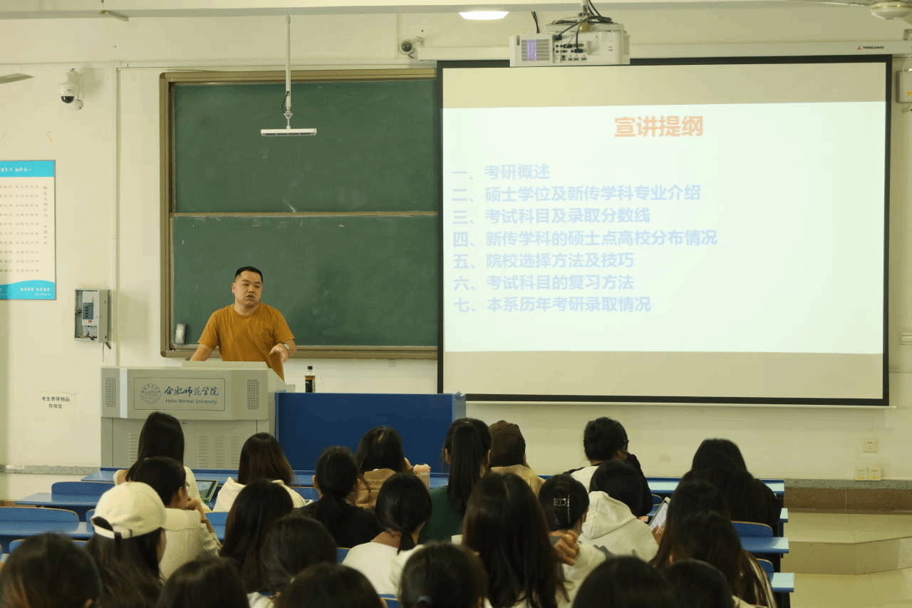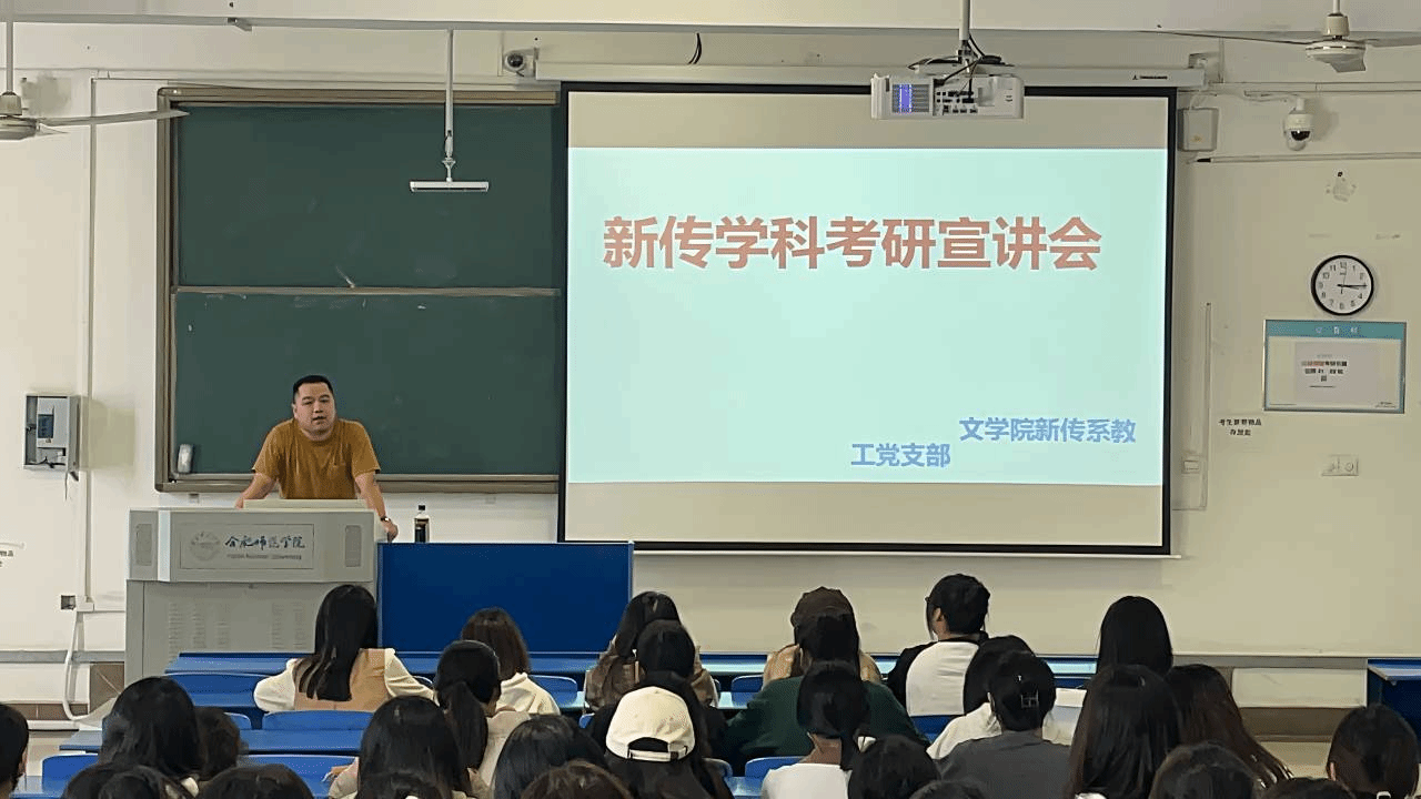 为帮助学生更好掌握考研信息,制定考研计划,明确考研目标,有针对性进行考研复习。近期,黄色片免费看教工党支部举办“党建引领、助力考研”系列活动,组织党员教师通过进班级宣讲、进宿舍个性化辅导等多种方式,指导帮助学生考研。10月11日下午,学院在逸夫楼A201举办首场宣讲会,新传系教工党支部委员、系主任张阿源主讲,来自编辑出版学、网络与新媒体专业的90余位学生参加宣讲会。