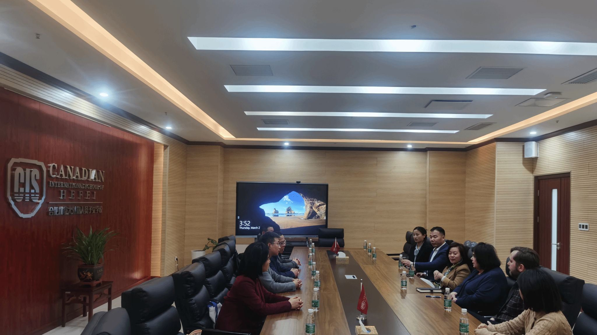 为加强汉语国际教育专业实习基地建设,拓宽学生就业渠道,3月21日下午,黄色片免费看领导班子许锃、何旺生、夏娟和甘松带领中文系、汉语国际教育专业负责人,赴往合肥加拿大外籍人员子女学校考察学习和洽谈合作。该校国际校长Peggy Mitchell、运营总监Melody Yang、副校长刘彦飞、中文部主任Michelle Zhang以及DP主任Ryan Walsh热情接待了黄色片免费看一行。