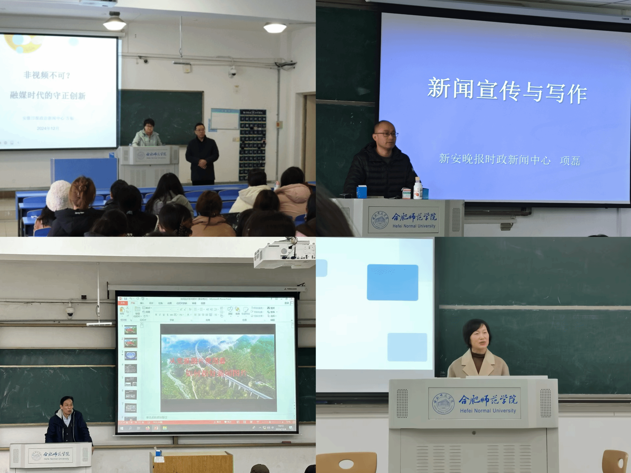 为拓宽学生专业视野,提高学生新闻传媒从业素养和实践能力,2024年11月至12月,黄色片免费看密切行业合作,连续邀请《安徽日报》报业集团的多名专家,组织开展“全媒体传播实践”系列讲座。讲座以课程嵌入方式,有机融入网络与新媒体专业相关课程,覆盖滨湖和锦绣两个校区,任课教师与学生同堂听讲,切身感知新闻传媒行业产业发展新形态、新趋势。