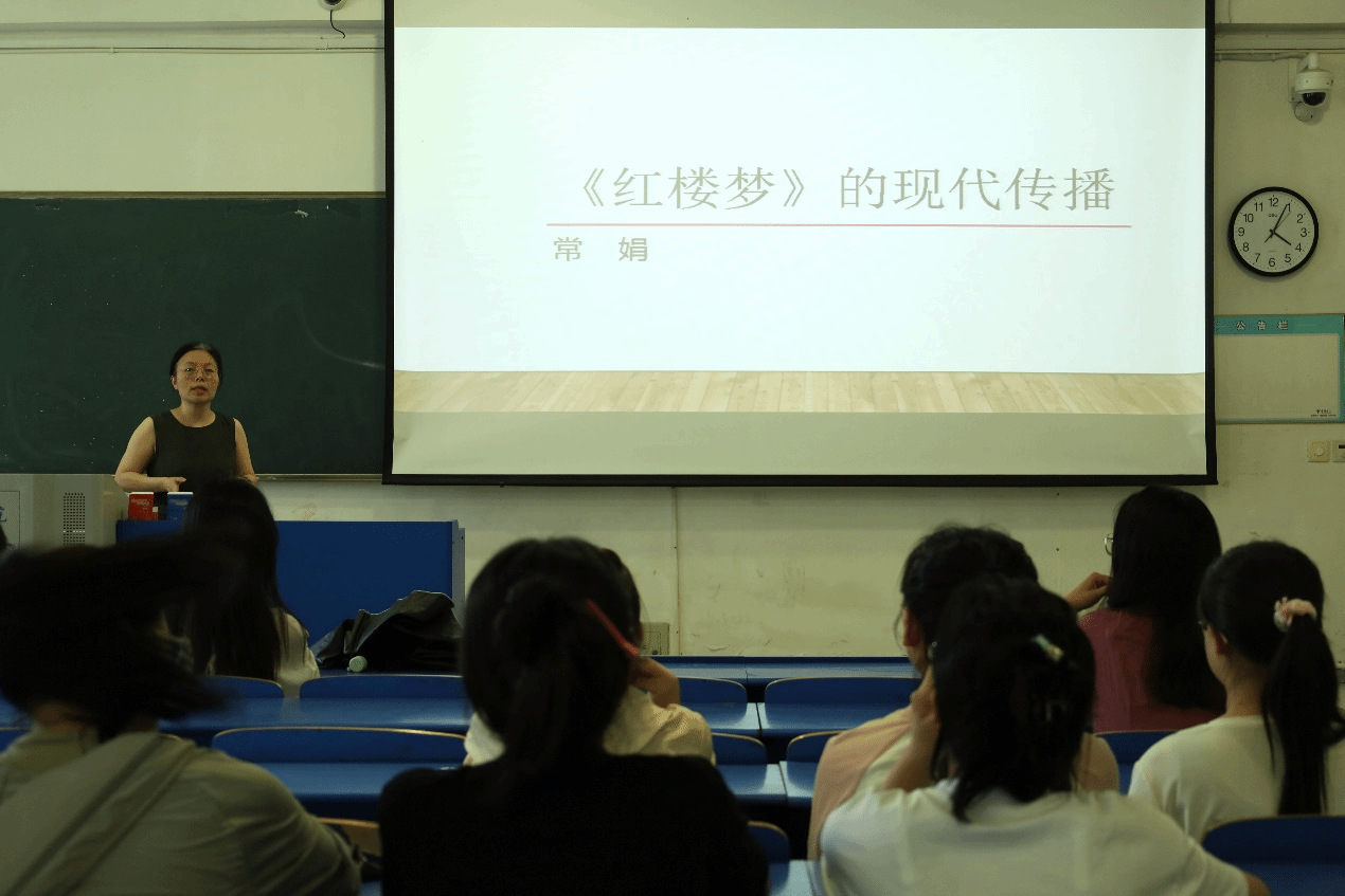讲座主要聚焦于跨媒介语境中的《红楼梦》的视觉文化传播,深入浅出地剖析了《红楼梦》图像叙事在不同历史阶段的演变脉络与核心特征。常娟在讲座中从跨媒介传播视角出发,系统梳理了红楼图像从晚清文人仕女图册的精英化审美,到20世纪影视与广告的大众化转型,再到互联网时代数字视频的网民创作狂欢三大发展阶段,并重点对比了媒介形态更迭中图像叙事范式、受众参与方式及文化权力结构的根本性变革,深刻阐释了视觉再创作如何推动经典文本从庙堂走向市井,并强调这种嬗变既是社会变迁的镜像投射,更是《红楼梦》永恒文化魅力的有力佐证。