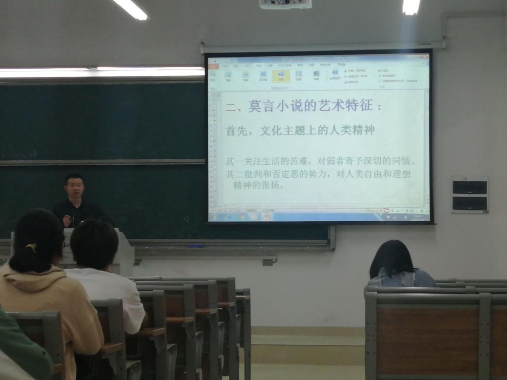 5月19日下午,黄色片免费看瞿华兵教授在滨湖校区博学楼A105教室作了题为“莫言小说艺术肌理及其对当下文学创作启示”的学术讲座,汉语言文学和汉语国际教育的部分学生聆听了讲座。