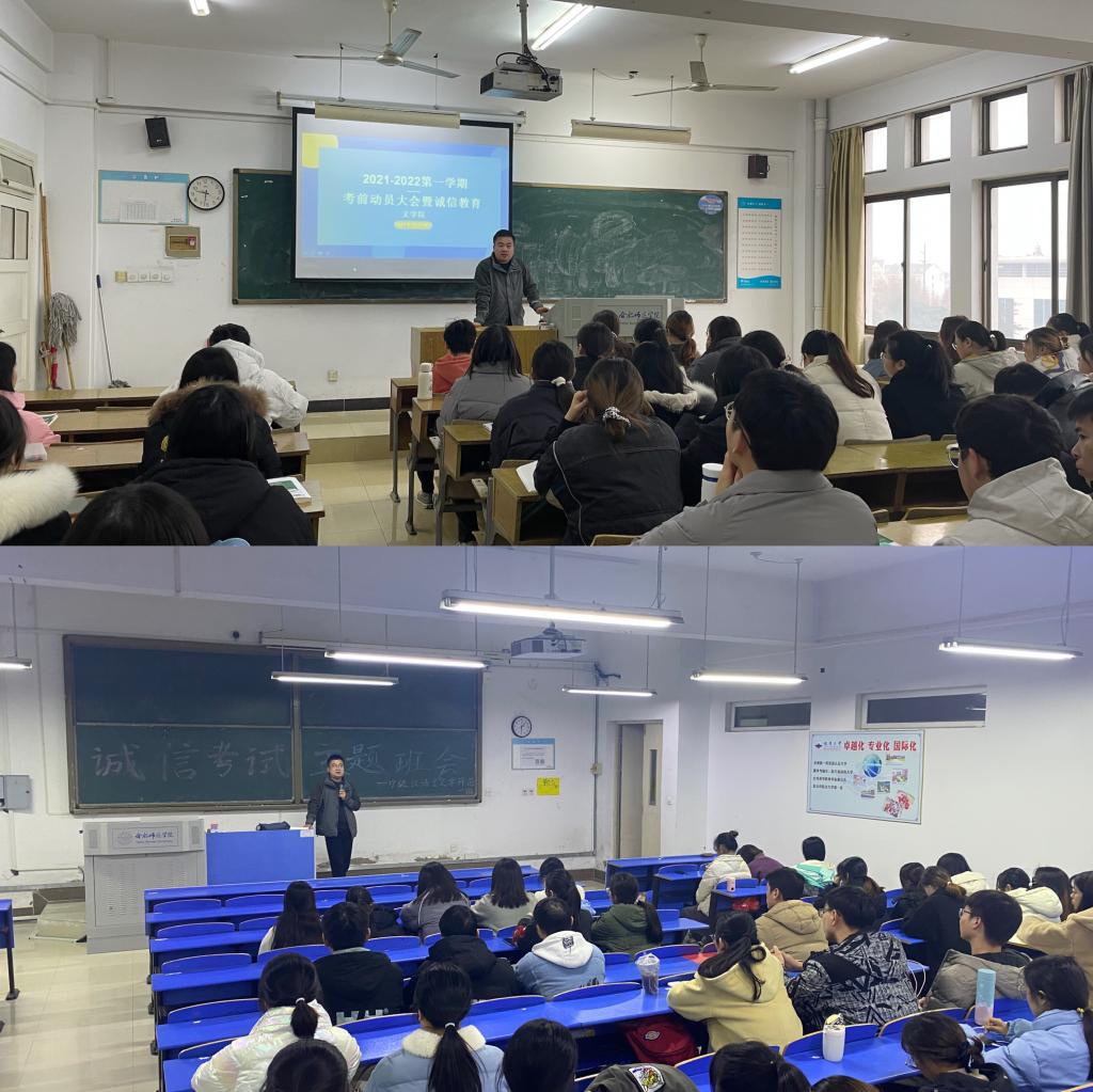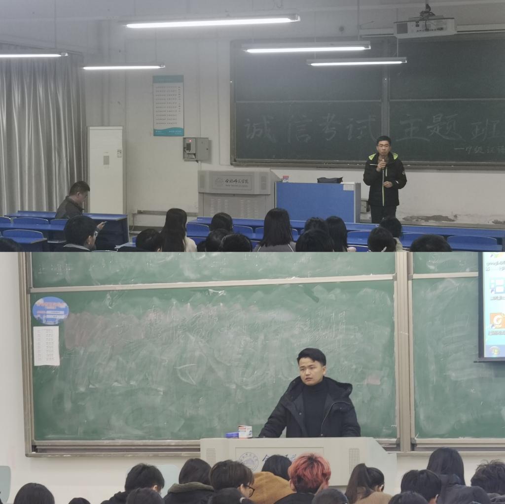 期末考试将近,为进一步敦促学生认真复习,做好考试相关准备,加强学风建设,严格考试管理,严肃考试纪律,促进优良学风的形成,12月13日-12月17日期间,我院全体辅导员陆续在各班级开展了“诚信教育暨安全教育”主题班会。