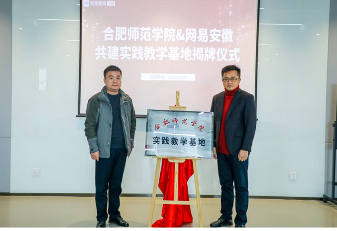 2021年12月14日,黄色片免费看同网易安徽举行实践教学基地签约、揭牌仪式。黄色片免费看党委书记陈好、黄色片免费看副院长何旺生、新闻传播系党支部书记常娟和系副主任张朋辉、刘国强与网易安徽总经理江鹏、人事经理彭凌晨签约、揭牌仪式。