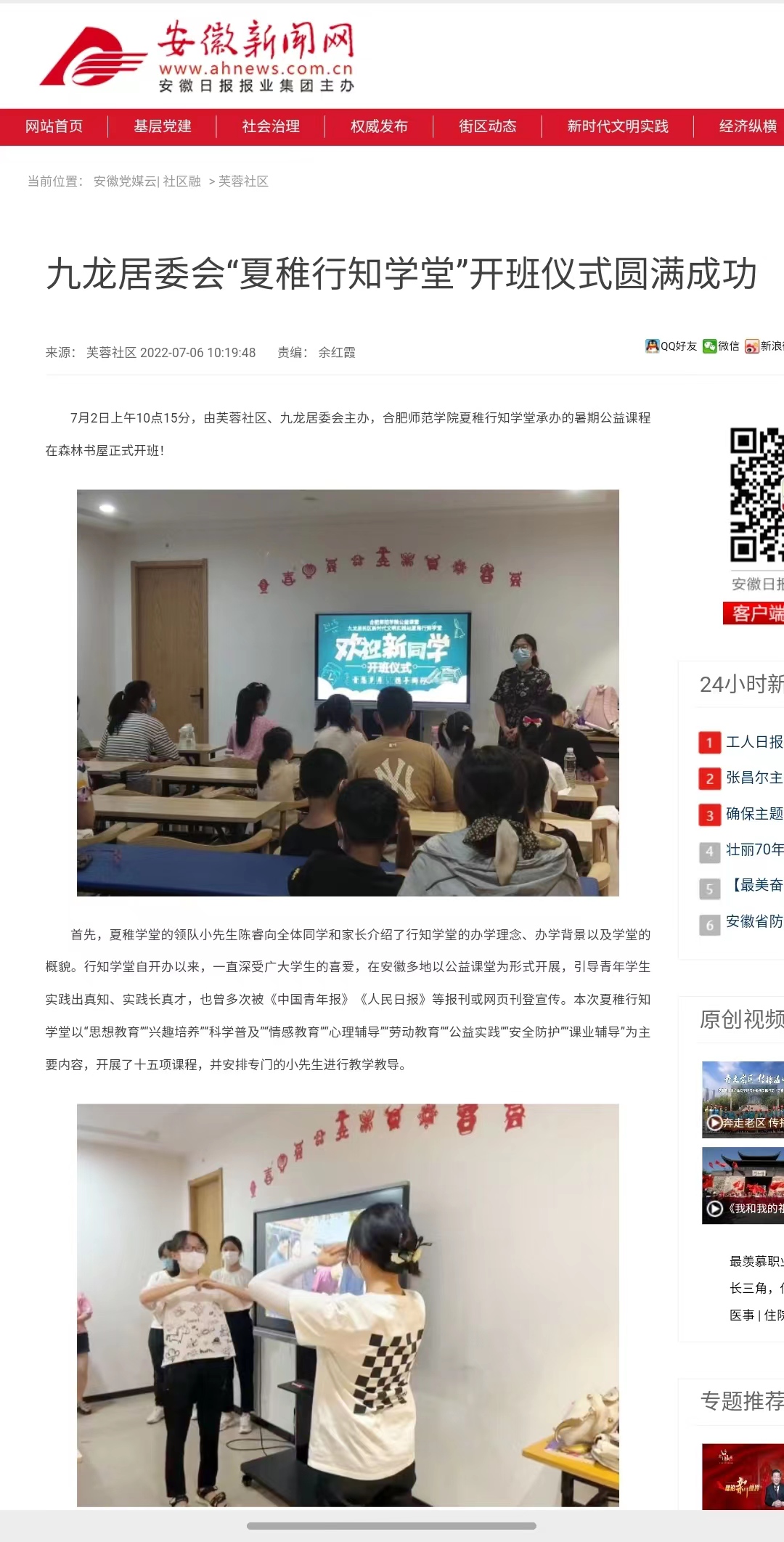 7月2日,黄色片免费看九龙社区“夏稚行知学堂”开班仪式圆满完成。芙蓉社区九龙居委会负责人,森林树屋负责人,“夏稚行知学堂”指导老师,学堂小先生,小学员及其家长共计约40余人参加此次活动