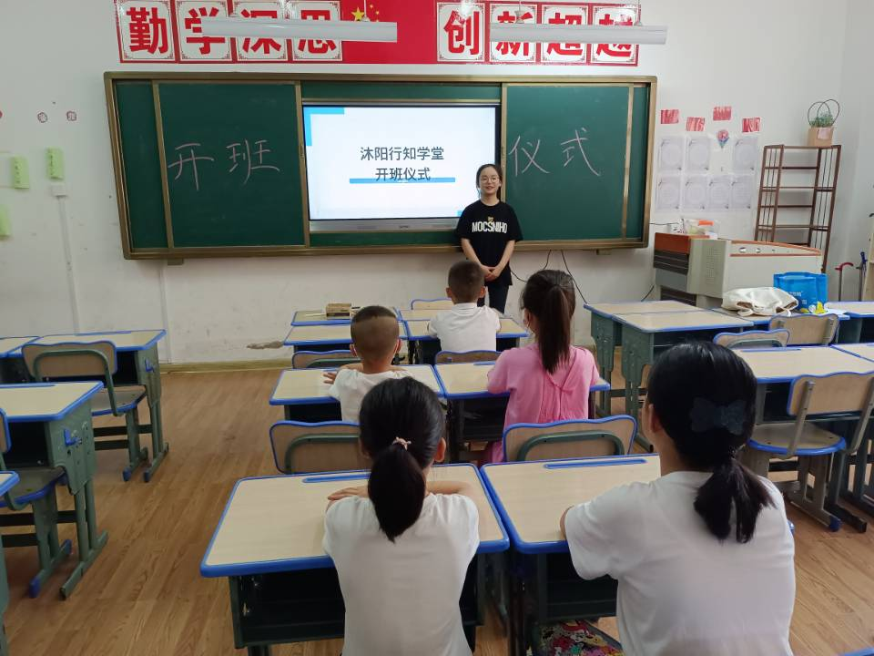 7月4号上午,黄色片免费看阜阳市“沐阳行知学堂”在颍州区上城国际小学一年级一班顺利举办开班仪式。学校负责人、“行知学堂”全体小先生、全体小学员以及家长代表共同参加了开班仪式。