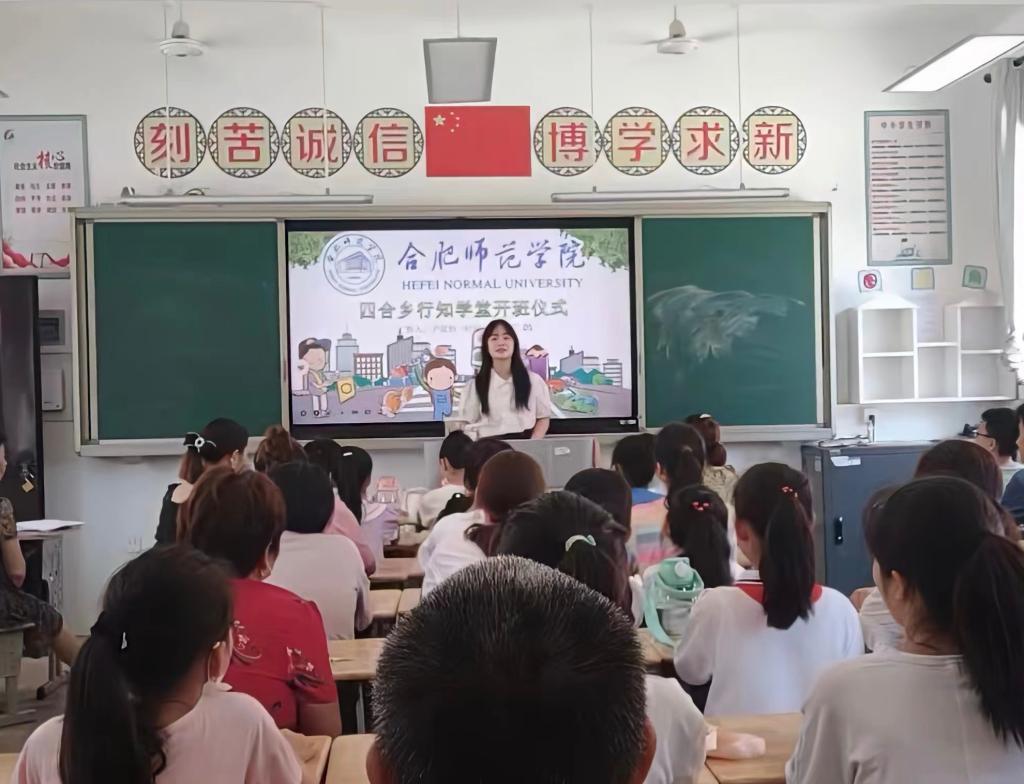 7月5日上午,黄色片免费看七彩行知学堂四合乡站点暑假公益课程开班仪式于四合乡中心小学正式举办。出席本次开班仪式有四合乡副乡长谌谨、四合中心小学校长张东万、四合乡团委书记卢永元、黄色片免费看行知学堂“小先生”,四合中心小学相关负责人以及30余位学生及学生家长。