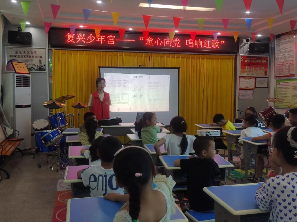 此次开班仪式是由安民行知学堂的团队负责人张群主持。她从行知历史、行知精神、行知小先生、党史教育四个方面详细介绍了本次行知学堂开办的目的。行知学堂是合肥师范学院的品牌活动,动员大学生志愿者利用寒暑假和业余时间深入基层,针对留守儿童和农民工子女等开办公益学堂。可以将行知学堂理解为留守儿童的“世界之窗”,而来到这里的小先生们则是尽自己的一份力量去陪伴儿童服务站里的每一个小同学。我们将贯彻实践合肥师范学院“爱满天下,知行合一”的校训,坚持“捧着一颗心来,不带半根草去”的理念,投身这短暂时间里与每一位小同学的相处过程中去。