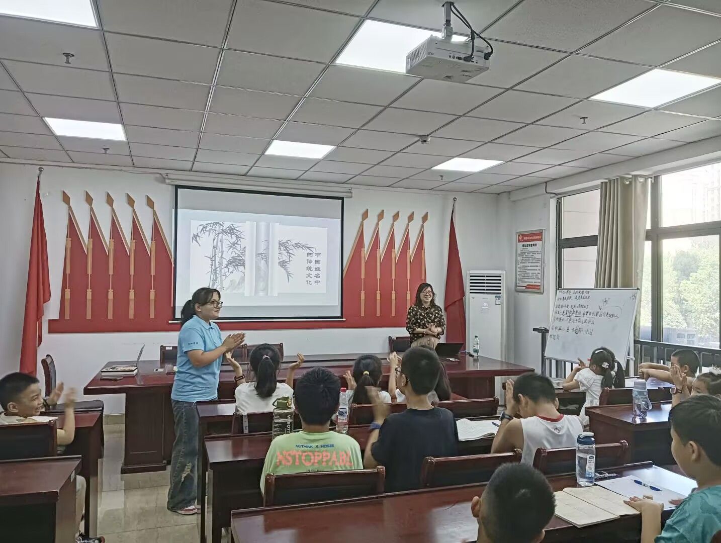 “小朋友们可知?马克思的全名是卡尔·海因里希·马克思,著名球星罗纳尔多全名能念到让舌头打结,而我们中国人的姓名,往往两字间就藏着大学问呢!”袁晓薇教授以中外姓名文化为引,妙语间尽显中华民族命名文化之精妙。从马克思的全名考据到孙悟空的法名渊源,从西方父名传承到东方姓氏制度,瞬间抓住了小朋友们的注意力,令小朋友们耳目一新。当论及“为什么我们的‘姓’要居前?”时,课堂顿时沸腾起来,小朋友们各抒己见,袁晓薇教授笑容温暖,语气亲和,俯下身倾听每一个稚嫩却充满创意的答案。欢声笑语中,传统文化的种子播撒心田。